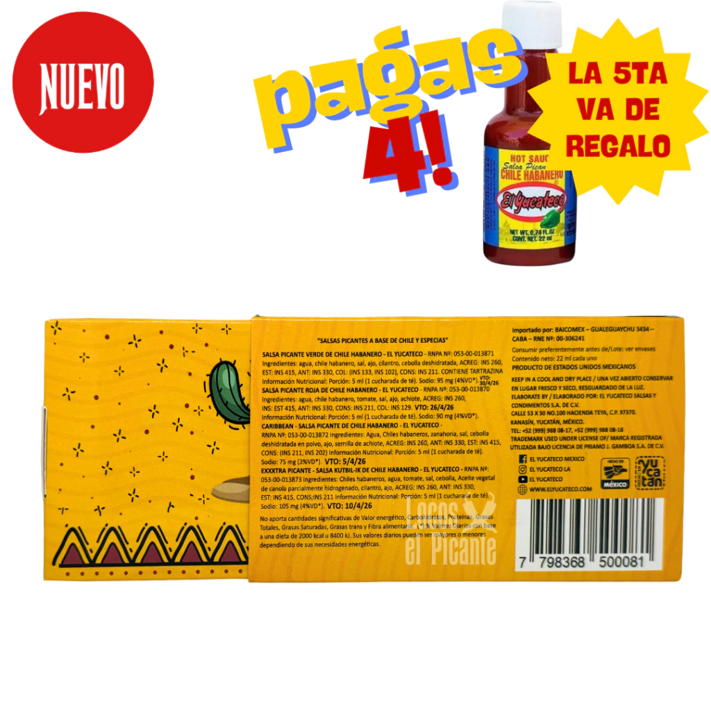 Incluye un mix sopresa de 5 unidades, de las 13 variedades de salsas yucateco. El contenido es al azar.