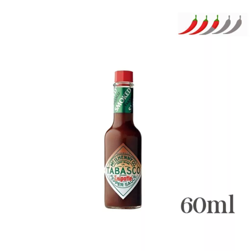 Tabasco Chipotle. La base de esta salsa es el sabroso chile Chipotle. Es una salsa con más cuerpo, menos líquida, a diferencia de las salsas Tabasco. El Chipotle no son más que Jalapeños ahumados o deshidratados. Su nivel de picante está entre las 1.500 y las 2.500 unidades SHU.